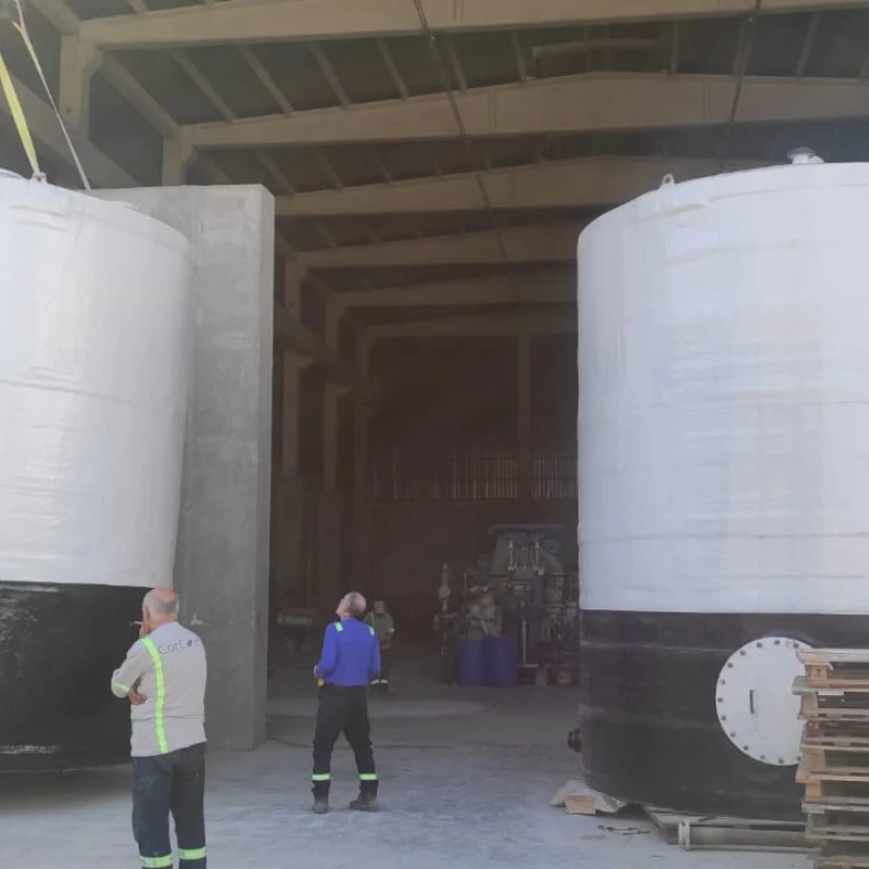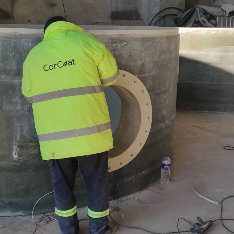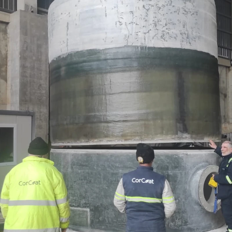 Solufert Kimya A.Ş Potasyum Ünitesinde kullanılmak üzere 4 mm Polipropilen + 20 mm Ctp kimyasal geri dönüşüm stok tankları imalatları CorCoat tarafından tamamlanmıştır. Herbiri 50 m 3 hacminde olan pp + ctp tanklar yüksek kimyasal dayanıma sahip olup, asidik ve bazik ürün stoklamasında önemli görev üstlenmektedir. Projenin devamında tank üstlerine ctp korkuluk ve merdiven imalat montaj işleri de CorCoat tarafından yapılmıştır.