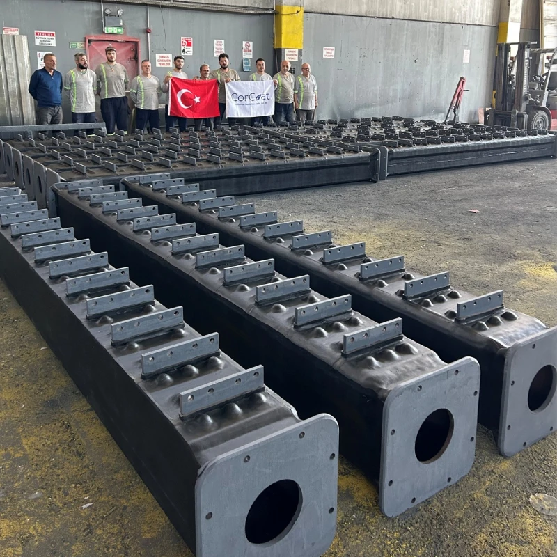 Wear-resistant rubber coating and vulcanization processes with a thickness of 6–10 mm were carried out by CorCoat for casting beams and delivered to Metso Germany. A total of 300 units were shipped in batches according to a defined delivery schedule and completed without deficiency.